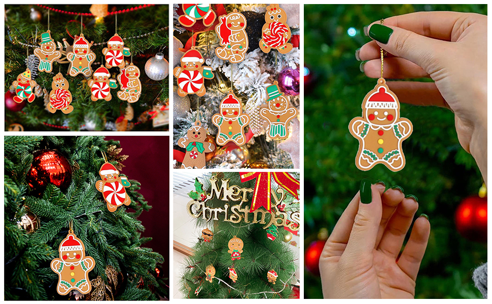 Gingerbread Christmas Tree Decorations, 12 Pieces Traditional Ginger Man Clay Figurine Xmas Tree