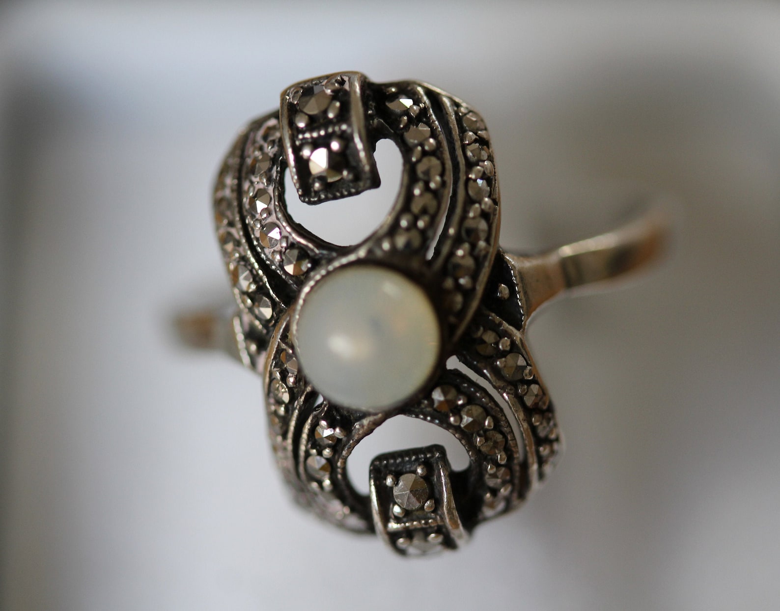 Antique Art Deco Ring Solid Silver 935 Pearl and Marcasite Etsy
