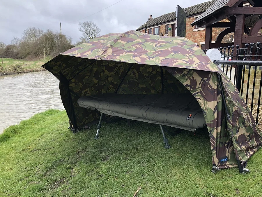 Also new for 2016, Aqua also has a solution for Fast & Light owners who want to use it all year round, in any weather. The Overwrap, which is also available in olive or DPM, twin skins the brolly, helping to reduce condensation and convert it into a full-fronted shelter. Making use of the whole footprint and adding extra inches at the front is.