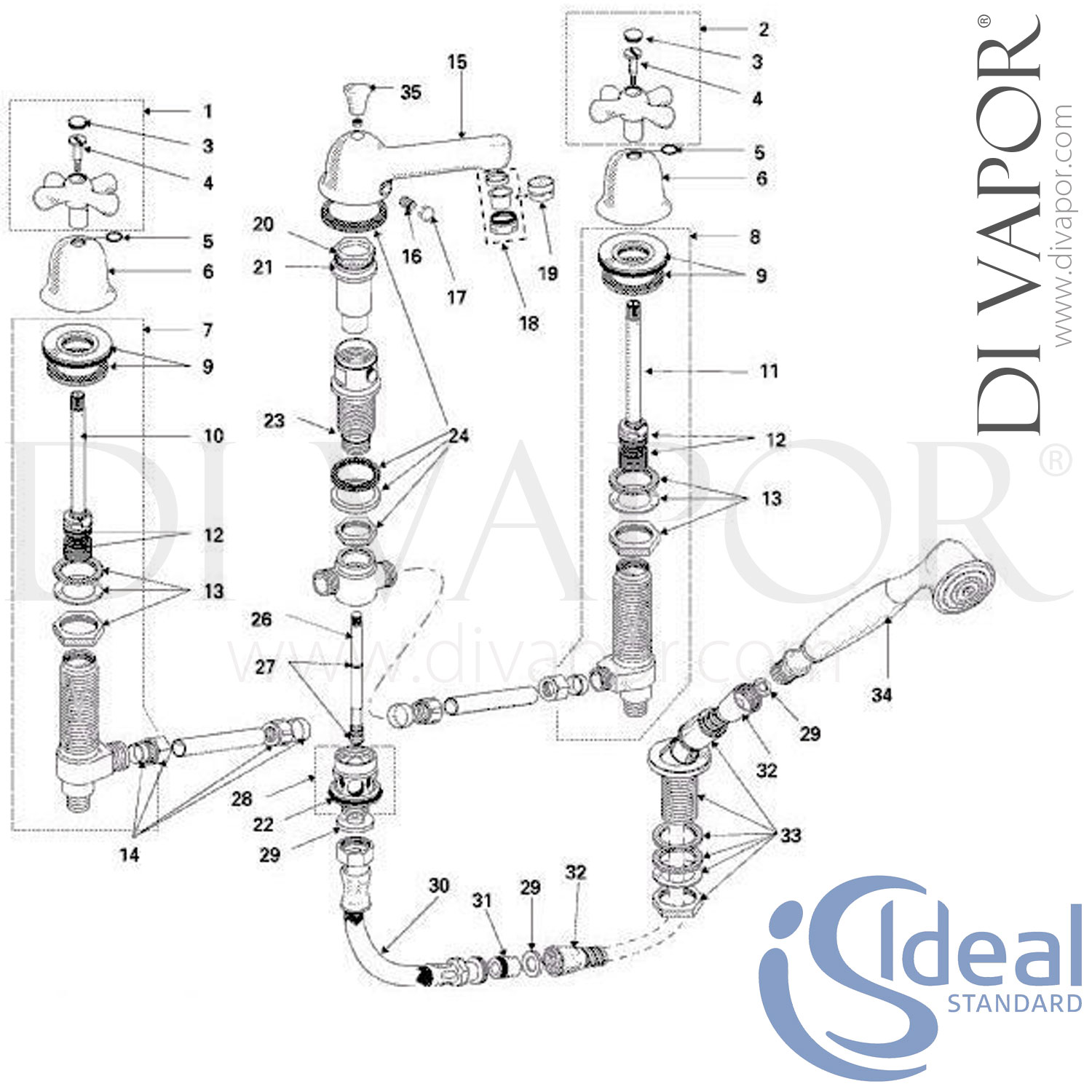 Ideal Standard Reprise Bath Shower Mixer Tap Spare Parts IDL DV 267