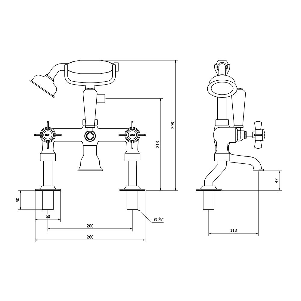 Bristan Club Pillar Bath Shower Mixer Chrome with Metal Heads VACPBSMCMT at Victorian