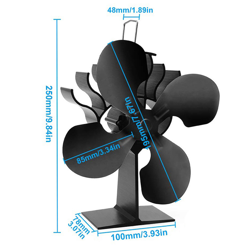 4 Blades Flue Pipe Heat Powered Wood Burning Log Fire Burner Stove Fan Silent eBay