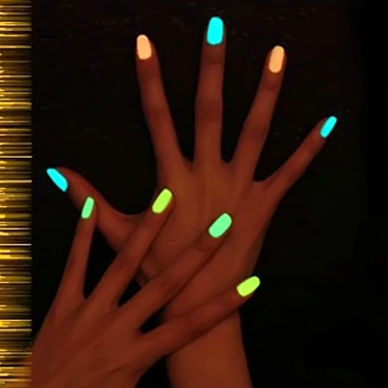 2. Luminous Nail Polish Powder. This luminous nail powder sticks to the nails and makes them light up at night. The powder needs to be sealed with a clear top coat for the colour to last. The glow in the dark powder comes in two different colors and can be used to make your own glow-in the dark nail and body art. 3.
