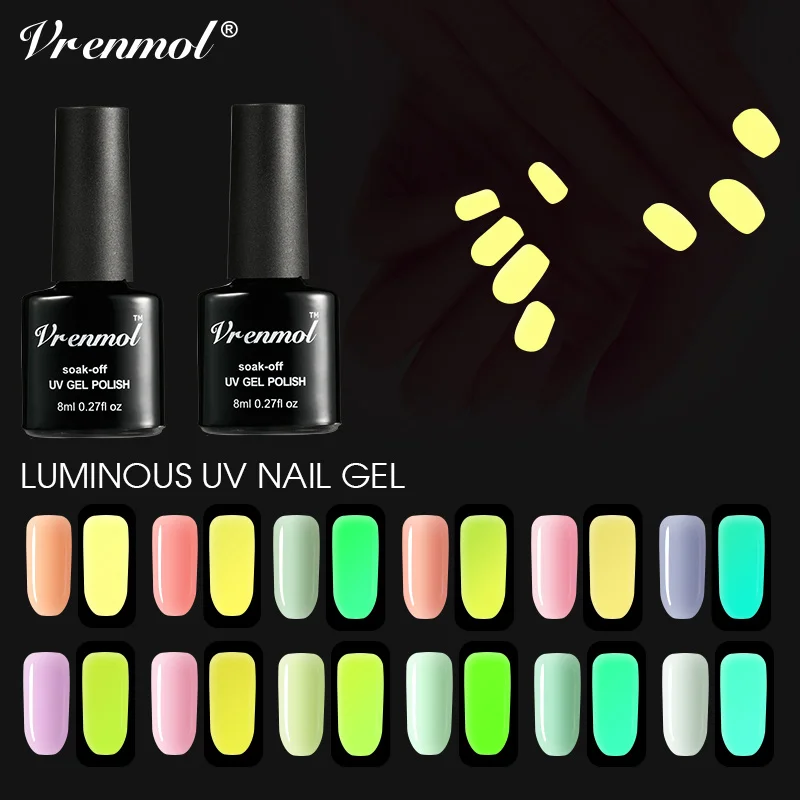 Vrenmol Colors Night Glow In Dark Nail Gel Varnish Fluorescent Luminous Gel Nail Polish LED UV