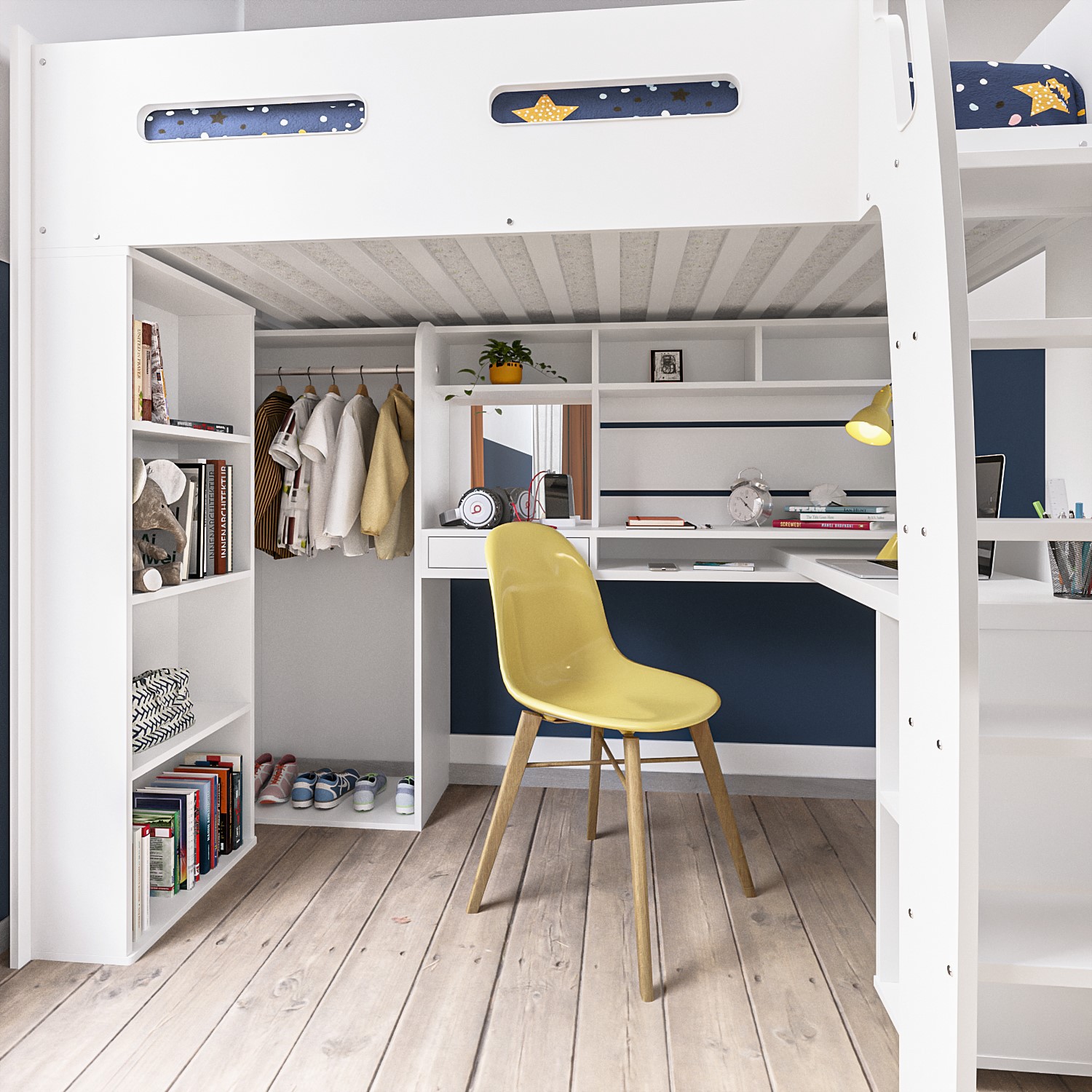 High Sleeper Loft Bed with Desk and Wardrobe in White Carter Furniture123