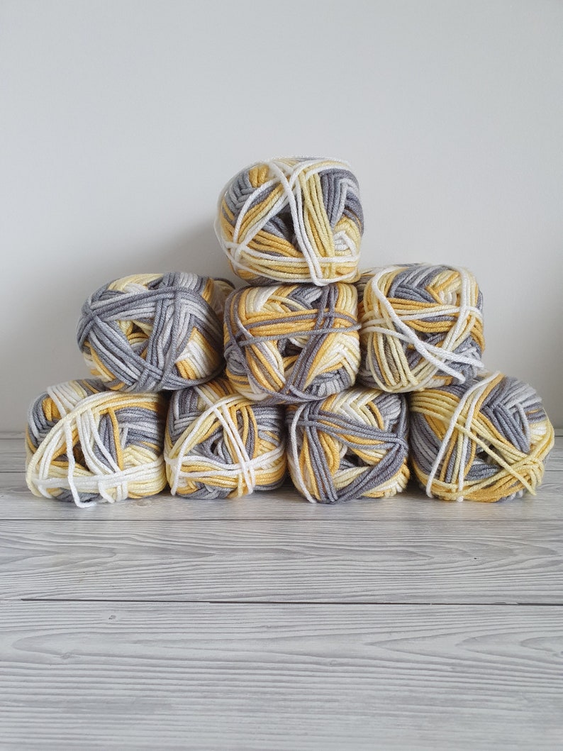 This bulky yarn is super-soft, self-striping and machine washable. We adore the fun color range, which knits quickly to create fun sweaters and cardigans for kids but will work just as well for grown-ups too. Net Weight. 100g (3.5oz) Blend. 100% Acrylic. Brand. James C. Brett. Care.