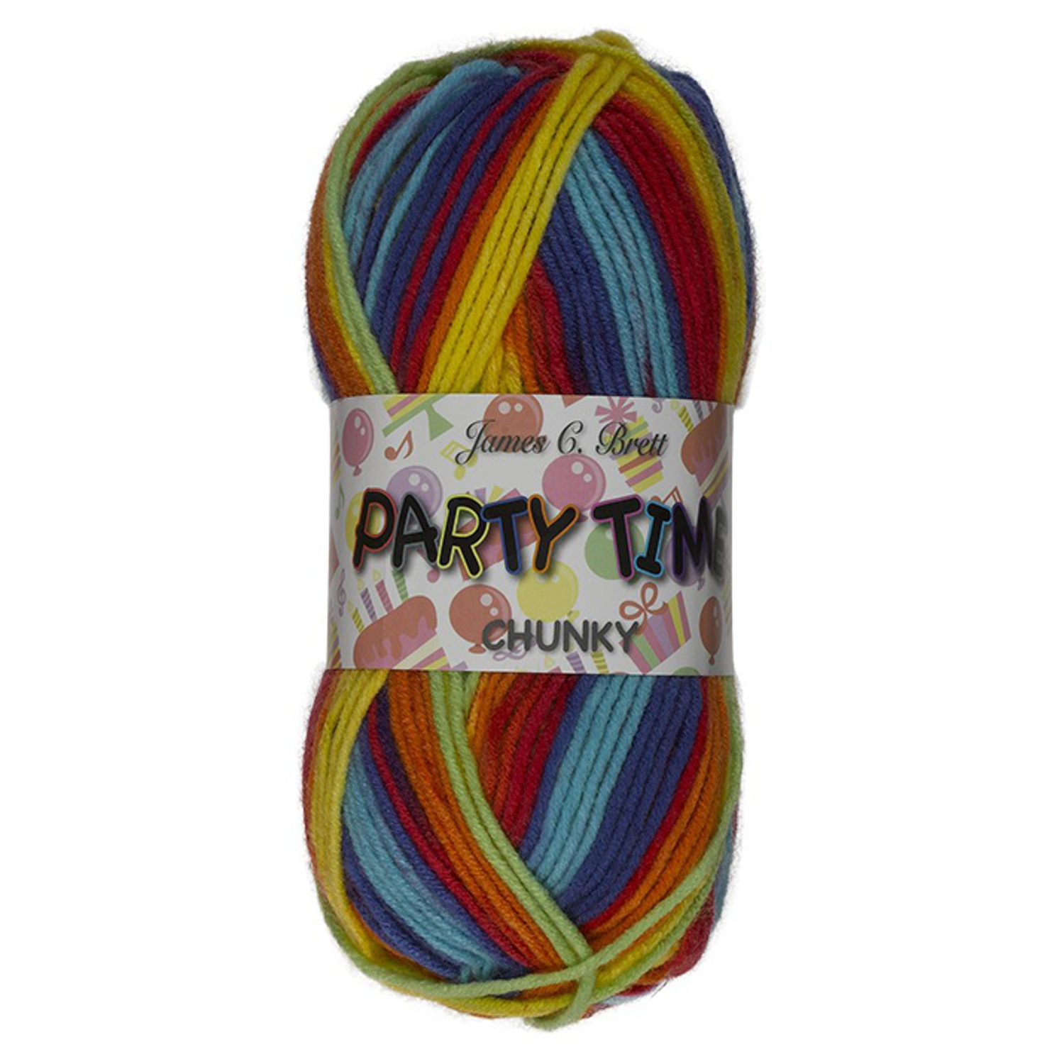 James C. Brett Party Time Chunky 100% Acrylic, 154m (168yds)/100g (3.5oz), Chunky. By James C. Brett. 27 reviews £3.75 9 Shades. View: View: PT1. PT2. PT3. PT6. PT4. PT10. PT11. PT09. PT13. PT1. In Stock £3.75. This chunky yarn is super-soft, self-striping and machine washable. We adore the fun colour range, which knits up fast to create.