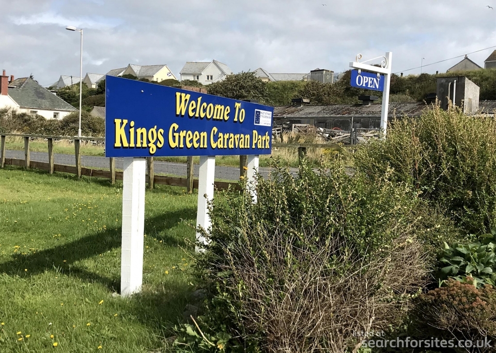 Caravan Park Pitches. Kings Green is a fairly large Caravan Park with fairly few pitches .The pitches are a standard size. Each camper has a pitch with a view of the sea.Even when the site is full there is a communal area of around 2 acres up the middle of the park. This area is fantastic for children to play on, and more importantly you'll.
