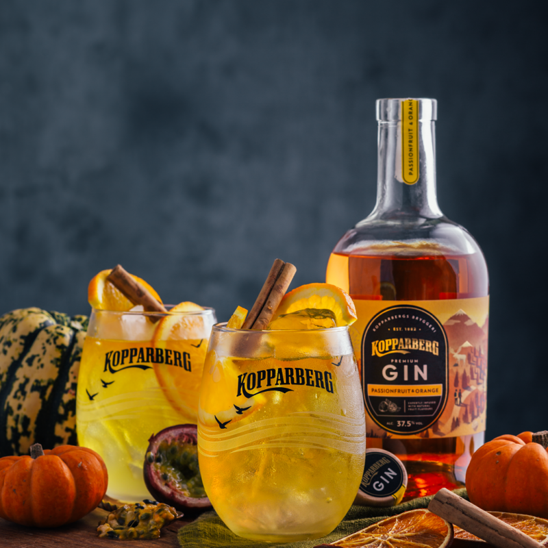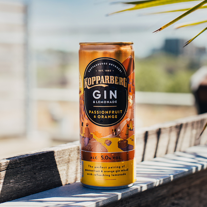 Passionfruit & Orange Gin. Kopparberg Passionfruit & Orange Premium Gin is bursting with the fruit flavours that made Kopparberg famous, with a bold and balanced taste. Mix with lemonade or tonic for a refreshing serve to enjoy whilst the sun sets. Find out more.