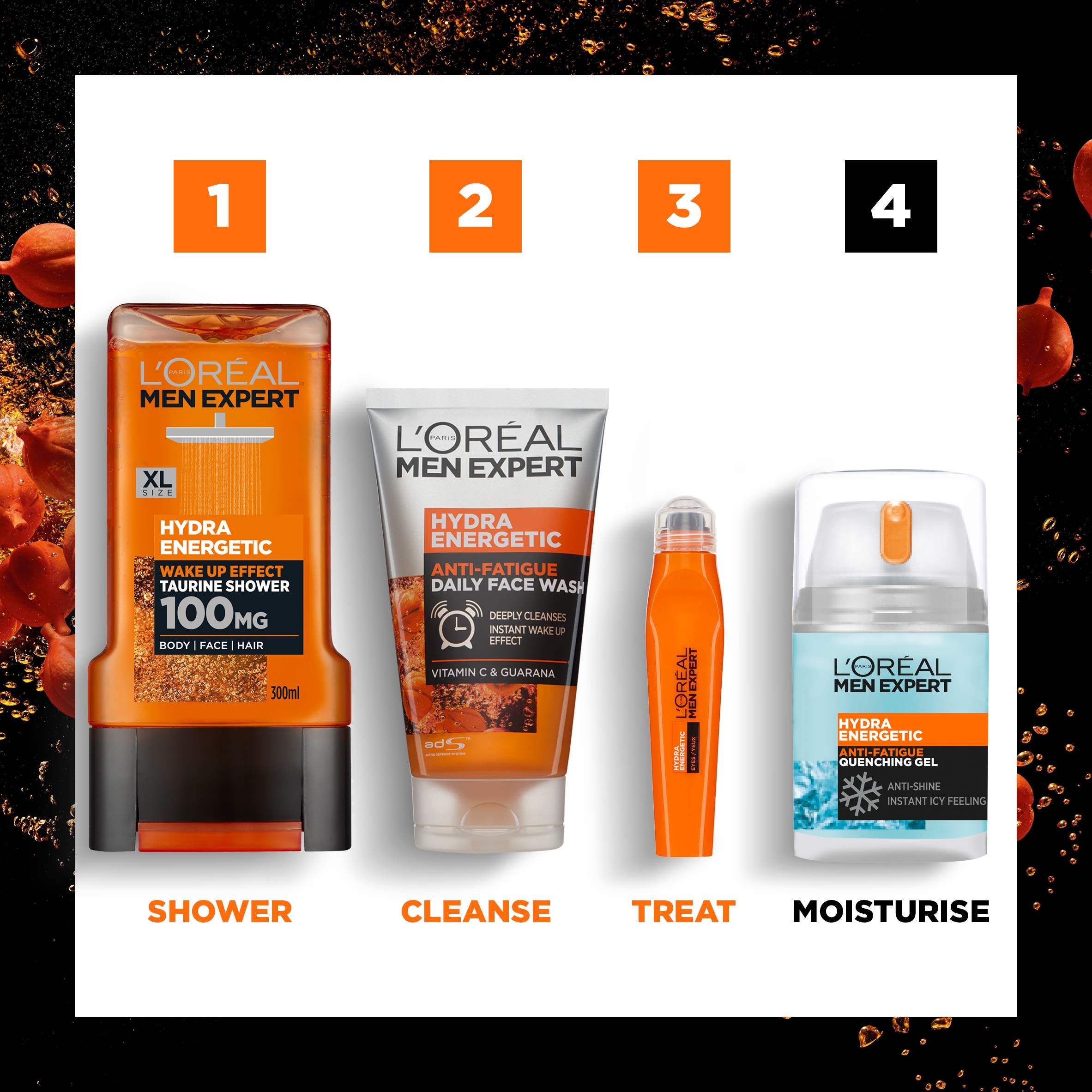 Recharge your skin with the essential anti-fatigue line up from L'Oréal Men Expert. Discover Hydra Energetic Anti-fatigue Moisturiser with Oxygen CP and Guarana to leave skin feeling relaxed and recharged. For your body try our Hydra Energetic Shower Gel with Taurine for an instant wake-up call. Turn up the energy and help fight the signs of.