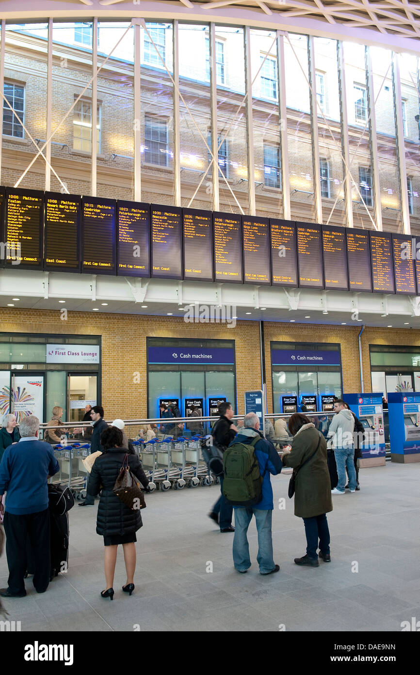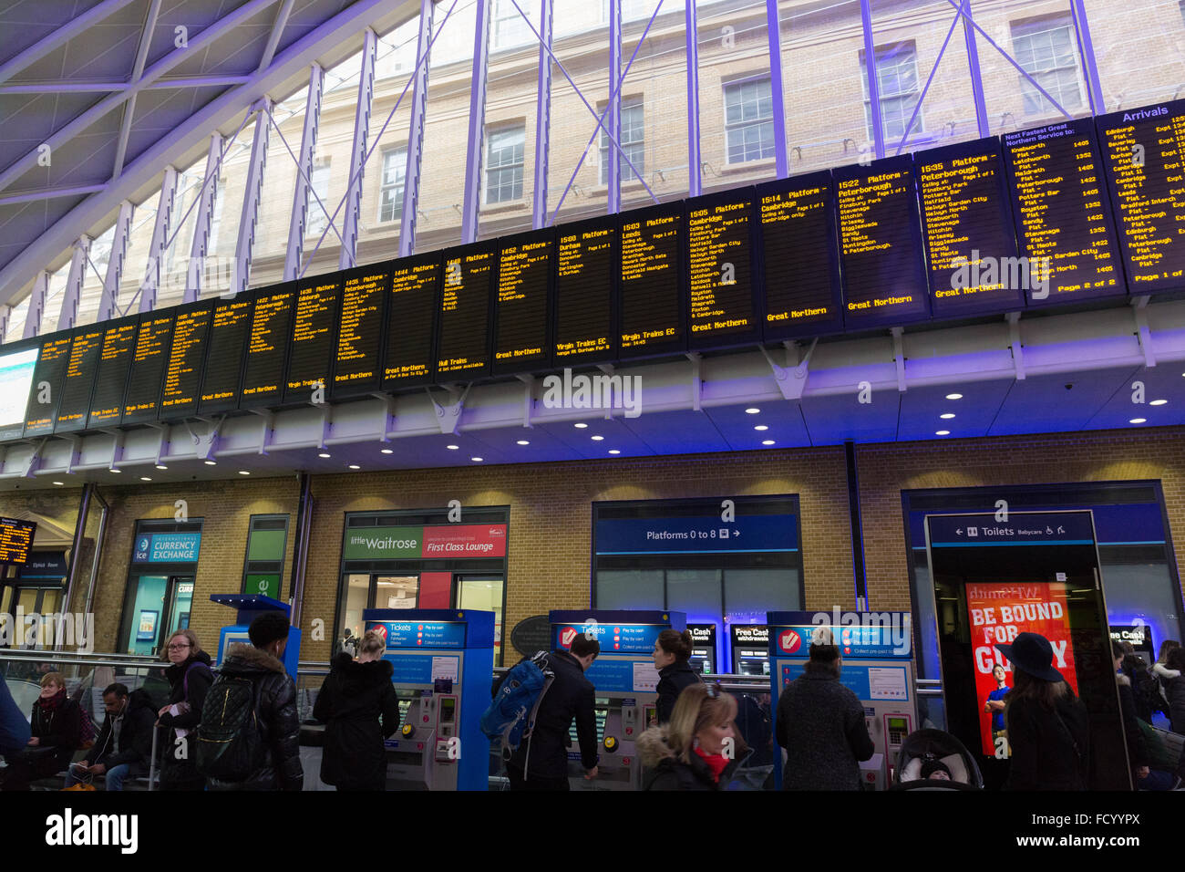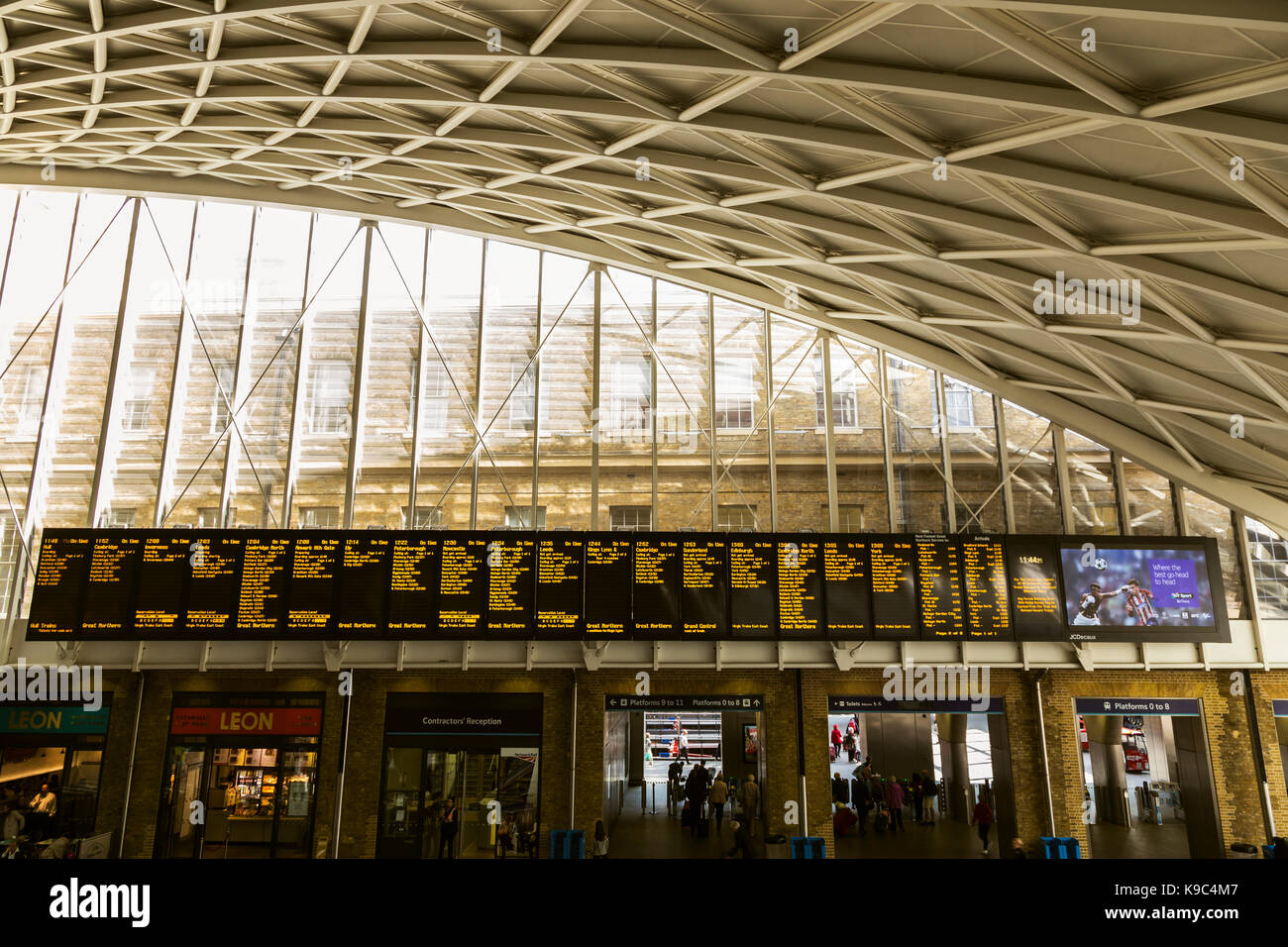 Departure boards in the western concourse area of Kings Cross Railway Station, London, England