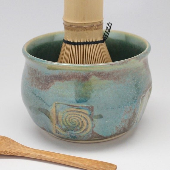 Matcha Tea Bowl with a Bamboo Whisk and Spoon by MountainMudBabies