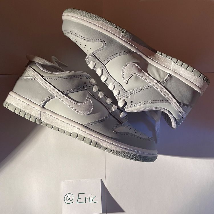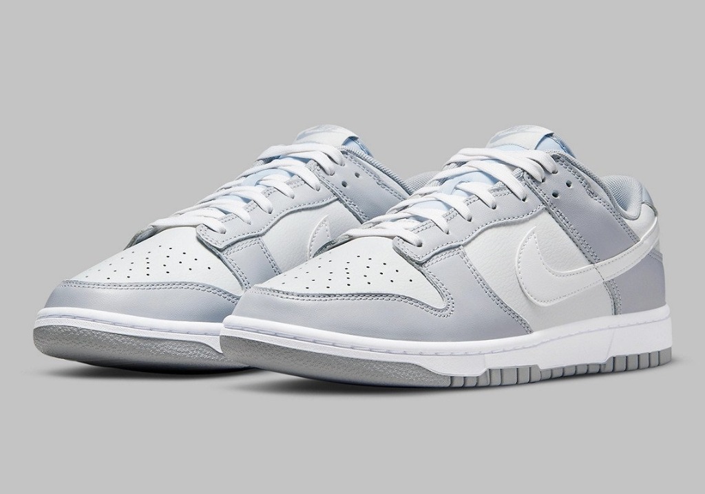 Product Description. The Nike Dunk Low "Two-tone Grey" is a versatile, white-and-grey colorway of the casual lifestyle shoe that was released in March 2022. The base of the upper is designed in Pure Platinum leather while contrasting Wolf Grey leather appears on the overlays. A white leather Swoosh is found on either side of the shoe and.
