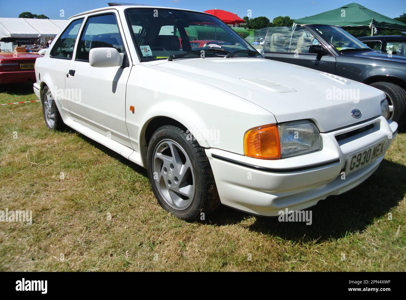 A 1990 Ford Escort RS Turbo parked on display at the 47th Historic Vehicle Gathering classic car