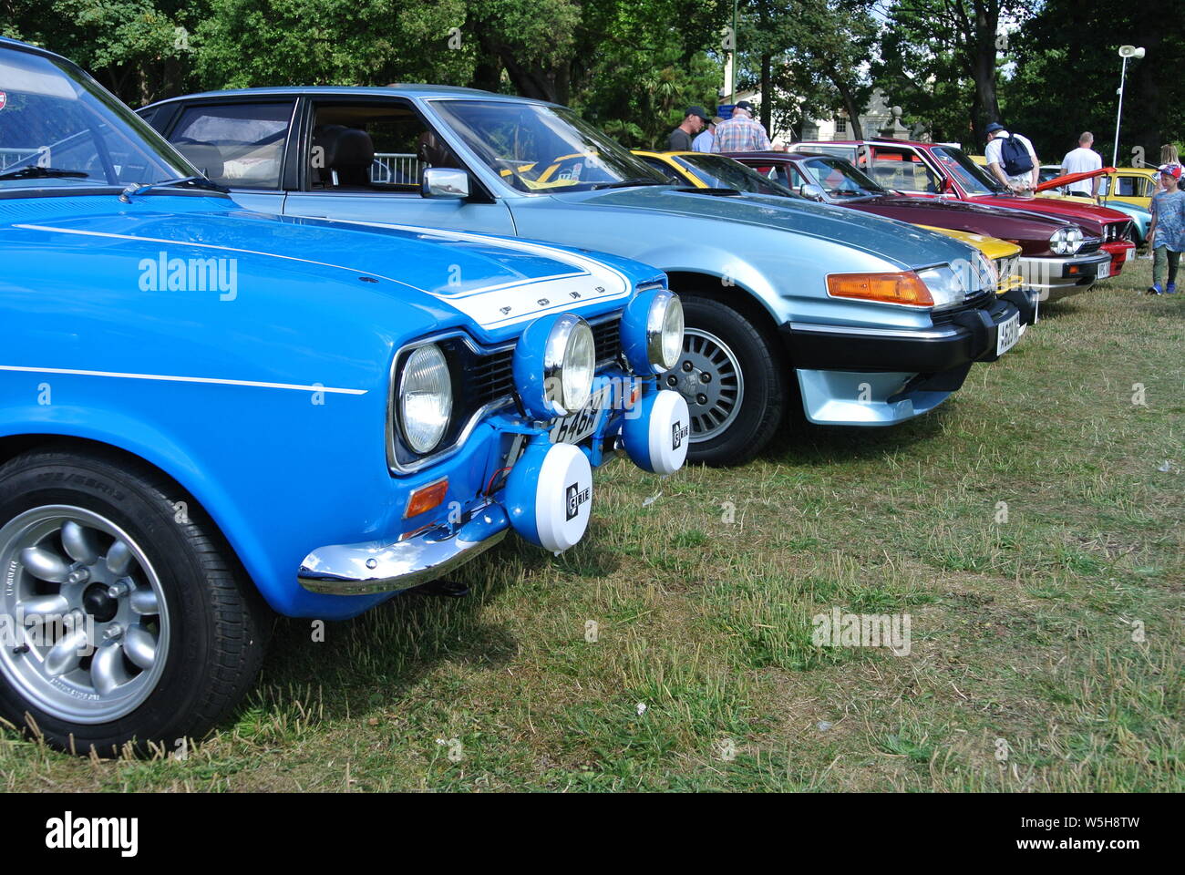 A 1980 Ford Escort Mk2 parked up on display at the English Riviera classic car show, Paignton