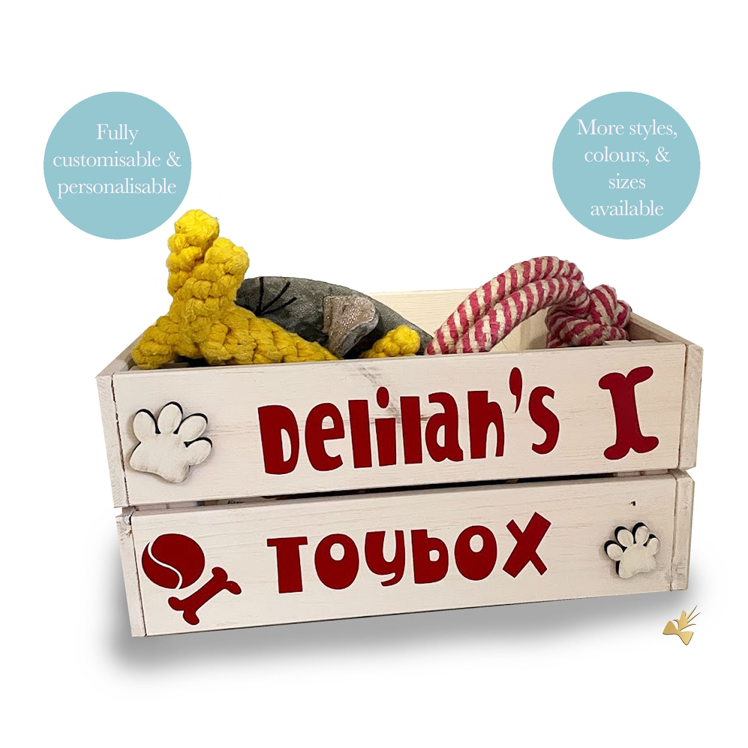 Personalised pet toy box dog toy crate pet toy box Dog toy Etsy Dog toy storage, Dog toy box