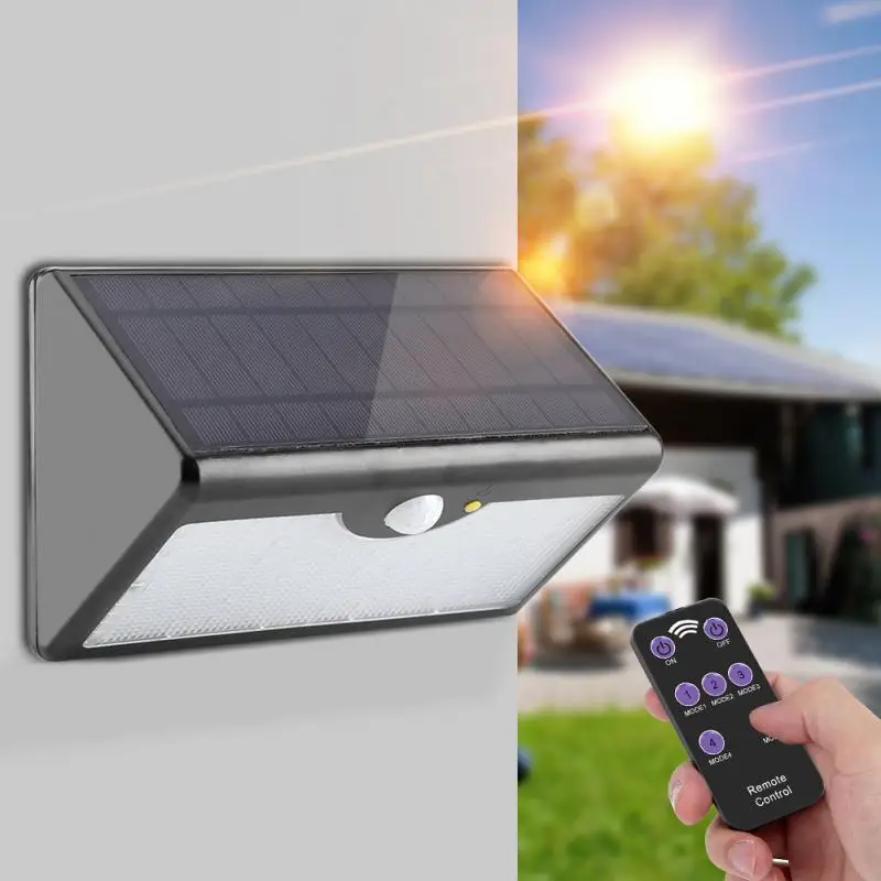 Solar Powered Remote control Solar Light 44 LED Waterproof IP65 PIR Motion Sensor Outdoor Fence
